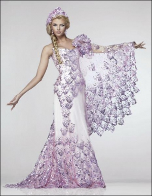 — Первое платье Кристины — образ Лыбедь, сестры трех братьев — основателей Киева. Это нежная, смелая и красивая женщина, — рассказывает модельер. — Второе платье похоже на наряд жар-птицы. Потратили на него около 3 тысяч стразов. Общая стоимость обоих платьев — 30 тысяч долларов.