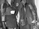 Букетом красных роз и бумажным пакетом с надписью "Кензо" Ларсона поздравляют блондинки из группы "69" Виолетта и Диана.