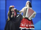 Португальцы "Флор-де-лис" пели в сопровождении свирельщика и баянистки, а на сцену проектировали узоры национальной вышивки. Мужская группа "Регина" из Боснии и Герцеговины выступила в военной форме времен Наполеона. Армянки Инга и Ануш Аршакян вышли в папахах.