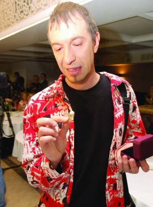 — А знают ли наши уважаемые звезды, как отличить настоящие часы "Ролекс" от подделки, — пытается заинтересовать гостей ведущий вечера 32-летний Игорь Посыпайко. - Настоящий "Ролекс" можно бить молотком и ему ничего не будет.