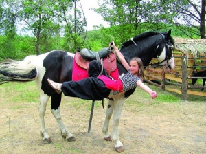- У девочек лучше получается, чем у ребят , - рассказывает Андрей Пивень. - У нас ускоренный метод. За два занятия детвора скачет, как деды. Знаю много контор, которые занимаются конным спортом. За час берут 200-300 гривен, а науки никакой.