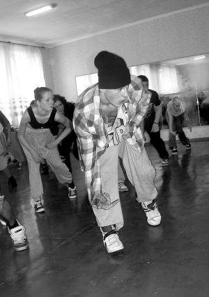 В танцевальном зале собрались с 20 парней и девушек. Александр показывает элементы хип-хопа. С его лица стекает пот. Клетчатая рубашка — мокрая.