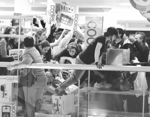- Ни одного года не было, чтобы кого-то не избили или не потеряли в толпе, - продолжает Дэн. - Когда люди хотят сэкономить несколько сотен баксов, они не видят препятствий. Главное в такой толпе - не упасть. Многие спотыкаются на лестнице. Несколько лет тому назад одна распродажа закончилась трагически. Растоптали 11-летнюю девочку. Теперь родителей просят оставлять детей дома или крепко держать за руку.