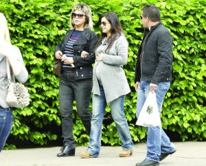 Ани Лорак - в синих джинсах и длинной серой кофте. Лицо покрыто тональным кремом и припудренное, на глазах - большие солнцезащитные очки. Держит подругу под руку, другой – периодически поддерживает живот. Подруга щелкает семечки. Очистки бросает в скрученный из бумаги кулек.