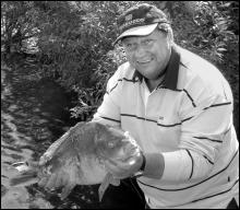 Волков заверил, что рыбу не кормили 10 дней. Он сфотографировался с Сережиным уловом, и рыбу выпустили в пруд.