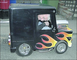 Британец 47-летний Перри Ваткинс создал самый маленький в мире автомобиль. Работал над ним семь месяцев. Полноценное транспортное средство Ваткинс сделал из игрушечной машинки. Автомобиль шириной 66 см, метр в высоту. Его вес — 150 кг.