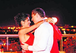 - Ужин на двоих в этом ресторане обходится от 300 евро, - рассказывает один из гостей, который не хочет называться. Ссылается на договор между молодоженами и гостями о нераспространении информации. - Угощали одним из самых дорогих шампанских "Дон Периньйон". Одна бутылка стоит 400 евро. Под него подавали бараньи котлеты на гриле, пряный омар, медальоны из голубя, карпаччо из лангустов и изысканные сыры.