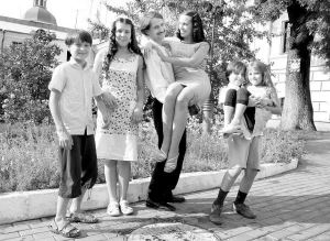 "Большая семья — признак того, что семейные ценности возвращаются, — говорит 41-летний киевский бандурист Тарас Компаниченко. С женой Ниной, 36 лет, воспитывает четверых детей.