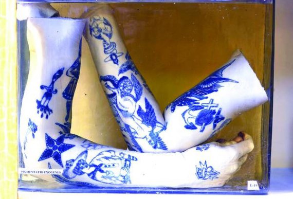 - Когда-то банки с экспонатами закрывали почтовой замазкой - раствор гипса и сургуча. Если неплотно банка замазана, формалин испаряется, воняет очень. Сейчас закрываем силиконом. Здесь в банках - человеческие конечности с одними из старейших заболеваний в мире - оспой и проказой, - показывает руку и ногу с красной сыпью, черными волдырями. - А это руки моряка конца XVIII столетия. Видите татуировку в виде якоря и британского флага? В те времена на наших землях цветные тату были редкостью, поэтому этот экспонат попал на выставку.