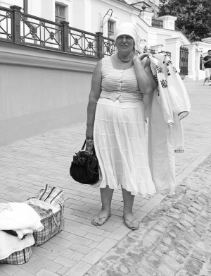 Вера Цыбенко стоит 4 часа. Вышиванок у нее никто не покупает.