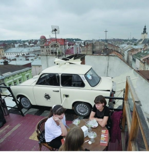 На последнем этаже ресторана — зал Львовской погоды, это терраса. Отсюда видны крыши зданий старинного центра под красной черепицей.