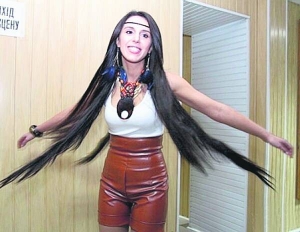 Киевлянке 27-летней Ирине Салимовой нарастили волосы до талии на конкурсе "Парикмахерское искусство 2012". В соревнованиях по наращиванию волос и плетению кос участвовали 20 парикмахеров из Украины.