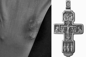 — Когда на Голгофе был распят Иисус Христос, с двухсторон распяли двух преступников, — объясняет доктор богословских наук и философии Дмитрий Степовик, 73 года. — На них были убийства, кражи. Один из разбойников проклинал Христа: "Так тебе и нужно. Ты выдавал себя за царя, а несешь наказание с нами". Другой преступник сказал: "Дурак, что ты говоришь? Мы с тобой — преступники и заслуженно несем наказание медленной смертью, а он — невиновен. Его зависть и грех человеческий распяли". Иисус Христос, собрав последние силы перед своей телесной кончиной, сказал к этому благоразумному разбойнику: "Ты в последние минуты своей жизни покаялся в преступлениях, теперь будешь со мной в раю". Вот этому событию посвящен этот крестик. Люди с криминальным прошлым надеются, что после покаяния на определенном этапе жизни получат прощение. По-видимому, Виктор Федорович чувствует грехи молодости. В какой-то степени почувствовал, что принадлежит к категории благоразумных разбойников. Это форма его покаяния. Она ценна в глазах Божьих, потому что он пришел спасать не праведных, а грешников.