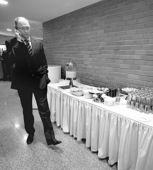 Место Яценюка в центре. Справа — нардепа, главы штаба "Батьківщини" Александра Турчинова. Слева — главы партии "Гражданская платформа", нардепа Анатолия Гриценко. В гостинице "Русь" начинается заседание совета Объединенной оппозиции. В него входят девять человек.