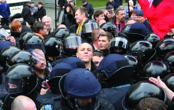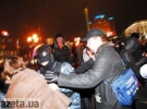 — В таком случае это будет встреча депутата с избирателями, — говорит нардеп-"нунсовец" 40-летний Андрей Парубий. Он берет свернутую темно-синюю палатку и идет к середине площади. Из подземного перехода парным строем выбегает отряд "Беркута" в шлемах, с палками. Не успевает Парубий пройти и 10 м, как его окружают "беркутовцы". Стоят кольцом в четыре ряда. Он пытается прорваться, но неудачно.