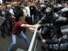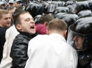 Митингующие плотно стоят на проезжей части и около выходов из парка. Стражи порядка начинают расталкивать их. На улице ливень. Люди падают в грязь. "Беркутовцы" идут по них. До середины толпы, где на микроавтобусе устроили сцену, пробраться им не удается. Их останавливают митингующие, и опять начинается толкотня. Люди руками бьют по черным шлемам стражей порядка, пинают ногами. На землю падают и протестующие, и "беркутовцы". С одного из стражей порядка слетает шлем. Его подбирает мужчина и бьет им по шлемам других стражей порядка. На "Беркут" бросают яйца, пустые бутылки из-под воды. Те в ответ размахивают резиновыми палками, брызгают слезоточивым газом. По голове попадает писательнице Светлане Поваляевой. В участок забирают нардепа-"нунсовца" Олеся Дония.
