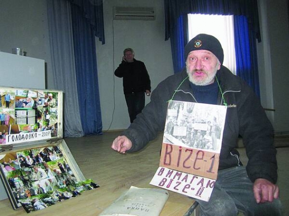 — И напишите еще, как нас пытались отсюда выжить обманом, — дополняет чернобылец 59-летний Владимир Деркач. — Губернатор уговаривал: "Мы вам дадим автобусы, по домам развезем, а наутро приедете снова". Но сегодня в здание уже не впускают наших товарищей. Зато губернатор дал команду открыть туалеты! Ляшко не смог открыть, Якименко не смог. Такой стратегический вопрос под силу решить только главе облгосадминистрации. Через эти туалеты издевались, надеясь нас выкурить.