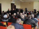 Люди в зале обсуждают позицию руководства организации "Союз Чернобыль". Слышно крики: