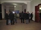 В зал входит Владислав Морозов, заместитель начальника управления Пенсионного фонда. За ним — представитель облгосадминистрации и милиционер. Просят освободить помещение. Чернобыльцы не соглашаются. В здании на всех этажах и у входа дежурят около 50 милиционеров.