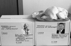 - Надо же напоминать людям, что о них помнят, - говорит председатель городского штаба Объединенной оппозиции 38-летний Анатолий Бондаренко. - По одной - на одного Табалова. Сам ходил на базар, покупал кур. Это идея членов нашей молодежной организации. Надо постоянно держать этих Табаловых в тонусе. Тушка - она и в Африке тушка. Придет посылка с "душком" - в самый раз будет