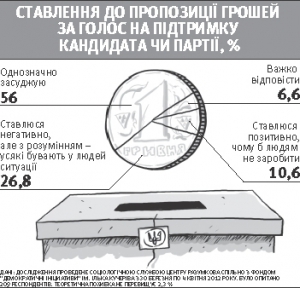 Большинство опрошенных украинцев осуждают предложение продать свой голос за определенного кандидата или партию, свидетельствуют результаты опроса Центра Разумкова. Люди еще имеют политическую культуру, говорит политтехнолог 37-летний Тарас Березовец.