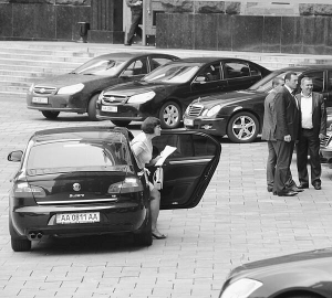 Министры собираются в среду утром на заседание. Из черного "фольксвагена"-мультивена выходит председатель Киевской горгосадминистрации Александр Попов. Говорит по айфону. В левой руке держит черную папку и пиджак. Помощник открывает перед ним двери в здание, пропускает внутрь. Вслед идет нахмуренный министр энергетики и угольной промышленности Юрий Бойко. Левая рука в кармане, под мышкой небольшая папка. Оглядывается во все стороны. На "Шкоде Суперб" подъезжает первый заместитель главы Администрации президента Ирина Акимова. На лестнице здоровается с министром регионального развития Анатолием Близнюком. Тот улыбается, потом целует в щеку какого-то мужчину.