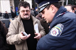 — Это не митинг коммунистов, а встреча с депутатами, — объясняет милиционерам народный депутат третьего созыва от Компартии 61-летний Владимир Пустовойтов. Показывает им справку об этом, подписанную нардепом-коммунистом Петром Цибенко.