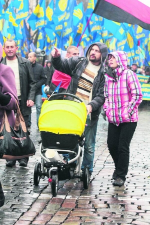 - Тягныбок не пройдет! - выкрикивает женщина, машет флажком КПУ. Но ее никто не поддерживает.