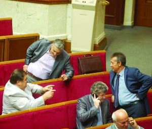 В сессионном зале около 10 "регионалов" стоят неподалеку от трибуны.