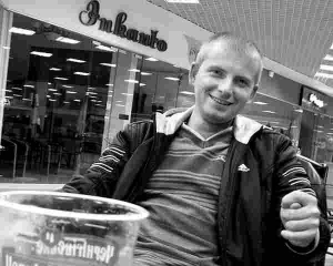Предприниматель 25-летний Евгений Сердюченко из Черкасс в воскресенье с друзьями пьет пиво в торгово-развлекательном центре " Днепр-Плаза". На выборы не пошел.