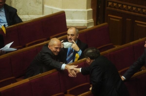 "Николай Харитонович, а чего это вы без повязки?" — спрашивает " бюто вец" 36-летний Олег Ляшко у нардепа от блока Литвина Николая Шершуна, 58 лет. Во вторник утром они идут к столам регистрации в Верховной Раде.