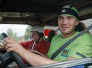 На БТР-2 медленно к старту подъезжает 27-летний нардеп-"регионал" Виктор Янукович-младший. Рядом с ним штурман Сергей. Их авто под номером 212. Янукович рассказывает, что полгода с друзьями переделывал его для гонок.