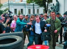 — Мы знали о том, что будет попытка повторить представление с мусорным контейнером и зеленкой, — говорит на камеру. — Когда появились "правосеки", я им сказал, что в мусорный ящик вы меня засунете только мертвым. Они попытались это сделать.