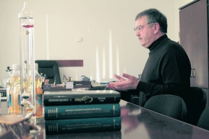 С Анатолием Степановичем встречаемся в его парламентском кабинете на 12-ом этаже. Он - председатель комитета по вопросам нацбезопасности и обороны. В углу комнаты - рисунок дочери Анны. На нем мужчина держит национальный флаг и надпись "За Украину!" Гриценко садится за длинный стол для совещаний напротив окна. Ставит хрустальную пепельницу и закуривает "Мальборо".