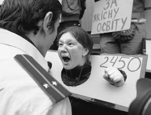 - Я уже пальцев не чувствую, - трет замерзшие руки 25-летняя Екатерина Чепура. - Наши символические кандалы на такую погоду не рассчитаны. Но что делать? Должны же показать людям, как нас заковывают политики. Этот законопроект подавало еще правительство Тимошенко. Сейчас его проталкивают "регионалы". Все объединяются, когда надо закрутить гайки людям. Вносят такие правки, которые могут посади любого за участие в митинге. Например, будут судить за то, что ты принес на акцию "опасный предмет". А о чем идет речь? Палка от флага тоже может быть опасным предметом