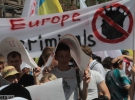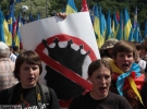 На підході до Михайлівської площі на дорогу вибігають близько 15 хлопців спортивної зовнішності. У кількох з них обличчя закриті до очей. Тримають плакат "Я хочу твою морковь". Поряд — дві дівчини, вдягнені у монашок. На ногах — босоніжки на високих підборах. "Свободівці", що йдуть попереду, напирають на молодиків. Починається штовханина. Хтось пирскає газовим балоном. Міліціонери виштовхують три десятки учасників в арку. Молодики тікають назад, зникають у натовпі.
