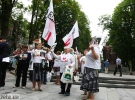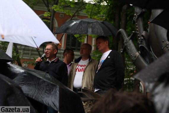 Активисты держали партийную символику "Батькивщины", некоторые из них были одеты в белые футболки с надписью "Юле - волю".