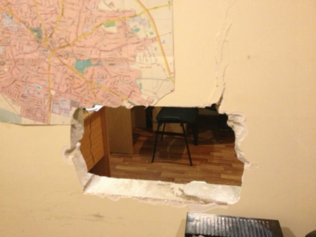 Сегодня ночью в стене дома, в котором находится штаб Мищенко, неизвестные выбили стену и пытались похитить документы.