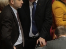 Не обошлось без столкновений и сейчас. Во время голосования за увольнение Сергея Арбузова с должности главы Нацбанка и назначение Игоря Соркина новым главой, некоторые "регионалы" пытались голосовать чужими карточками. Их еще перед началом заседания раздали партийцам. Остановить их пытались "свободовец" Игорь Мирошниченко и "бютовец" Александр Бригинец. Последнему досталось локтем по подбородку от коллеги по парламенту. Также депутатских полномочий лишили новоназначенного министра экономики Игоря Прасолова. Две предыдущие возможности - провалили.