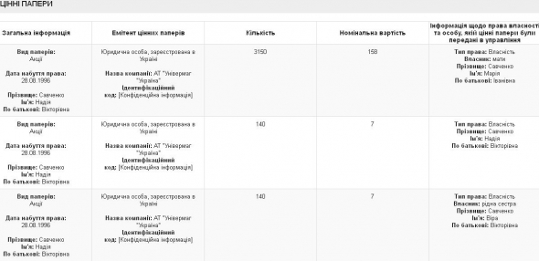 Народный депутат Надежда Савченко владеет акциями универмага "Украина".
