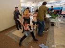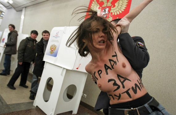 Три девушки разделись до пояса, стали скандировать антиправительственные лозунги и с криками побежали к урнам голосования, передает Эхо Москвы.
