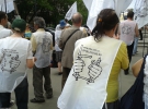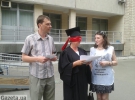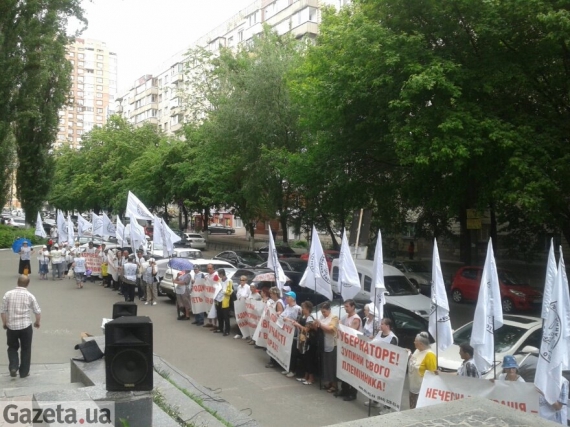 Всего на акцию собрались около 50-ти человек. Они уверяют, что приехали из Василькова защитить своего кандидата. Однако конкретно цель этой акции объяснить не смогли. Преимущественно митингующие избегали вопросов.