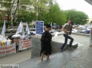 Также митингующие провели перфоманс, которым показали "слепых" судей, которые принимают во внимание не документы, а деньги. Так, одна из участниц надела мантию судьи, а на глаза связала красную повязку. Несколько других участников, представлявших заинтересованную сторону, дали "судье" деньги, после чего она согласилась взять фиктивные документы.