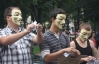 Во вторник около 11.00 на улице Горького Киева молодые люди в масках с черными плащами ставят трибуну на аллее. Называют себя активистами Движения Гая Фокса. Говорят, что пришли пикетировать под стены офиса партии УДАР.