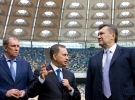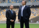 Янукович сделал два пробных удара по мячу на новом поле стадиона.