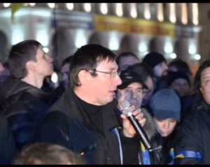 "Янукович дал нам пощечину. Он дал пощечину всем кто верил, что Украина - это Европа. Теперь от политиков ничего не зависит. Теперь все зависит от миллионов людей. Поэтому, друзья, все очень просто: 100 тысяч на площадь, требование роспуска Верховной зрады, избрание нового проевропейского парламента, нового проевропейского правительства и подписания Соглашения об ассоциации с ЕС", - заявил Луценко.