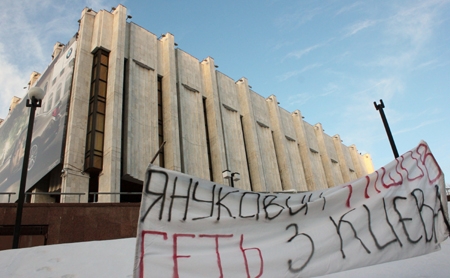 По их словам, акцию провели те же активисты, в июле поздравляли Януковича с днем ??рождения.