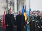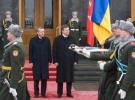 Военный оркестр исполнил Гимны обеих стран, президент и премьер-министр обошли строй воинов Почетного караула.