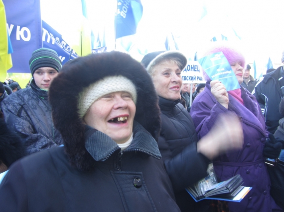 - На майдане основная масса за деньги, - рассказал корреспонденту представитель Марьинского района Донетчины. – Студентам повесили лапшу. Платят им организаторы беспорядков. Вот у нас на юго-востоке все работают. Виноваты ваши продажные СМИ – не хотят слышать мнение рабочего человека. Оппозиционерам надо освободить 9 провокаторов и Тимошенко, а потом пролезть во власть. Янукович - законный президент и я бы хотел, чтобы он был пожизненно – тогда в стране будет порядок. В 2004 году уже один раз пустили оранжевую чуму! Надежда на завтрашний день - только с Януковичем.