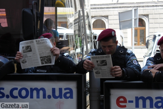 "Сюда согнали милицию со всей страны - только киевской милиции здесь 5 тысяч человек. Спасибо им за помощь - с ними нас больше!", - uоворил в микрофон "бютовец" Андрей Павловский.